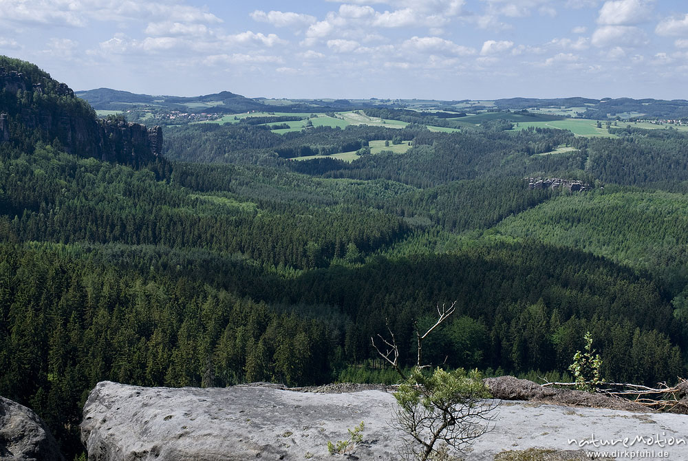 Blick über den Wildensteiner Wald Richtung Kuhstall, Sandsteinfelsen Bad Schandau, Deutschland