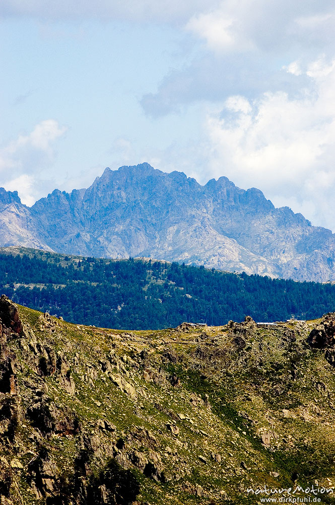 Blick zur Bergerie de Capellacio, im Hintergrund vermutlich der Cima a i Mori Korsika, Frankreich
