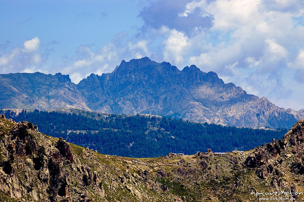 Blick zur Bergerie de Capellacio, im Hintergrund vermutlich der Cima a i Mori, Korsika, Frankreich