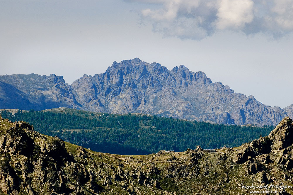 Blick zur Bergerie de Capellacio, im Hintergrund vermutlich der Cima a i Mori, Korsika, Frankreich