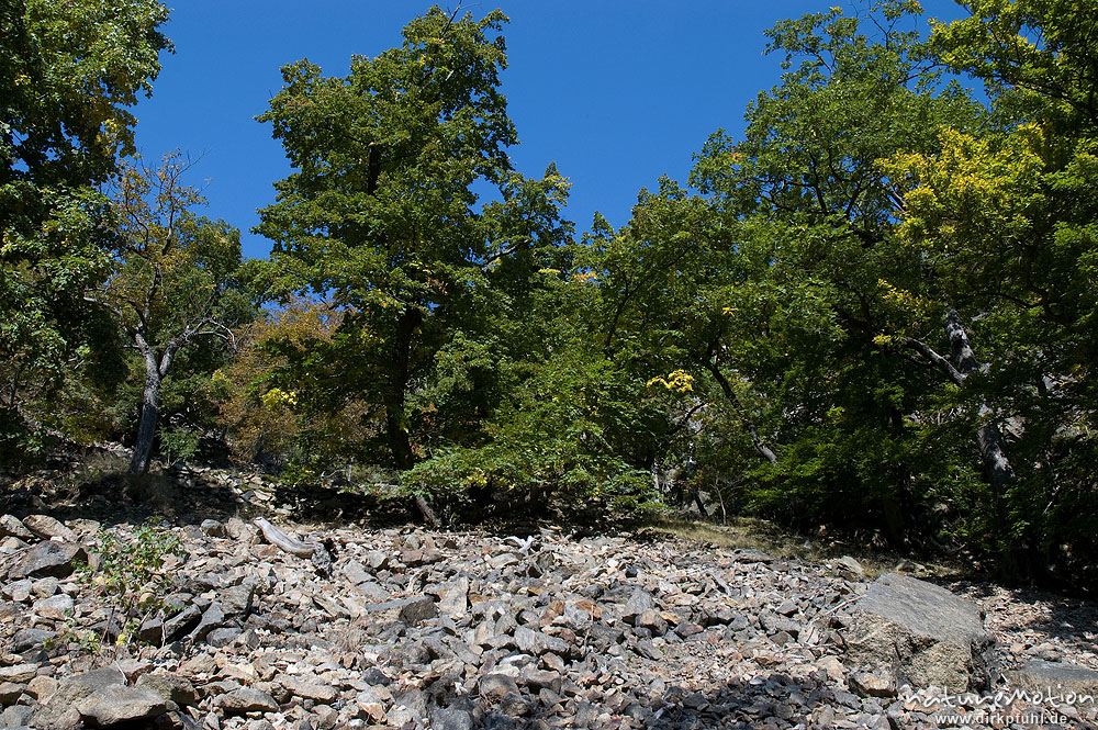 Blockhalde und Eichenhangwald, Bodetal bei Thale, Autstieg zur Rosstrappe, Bodetal, Deutschland