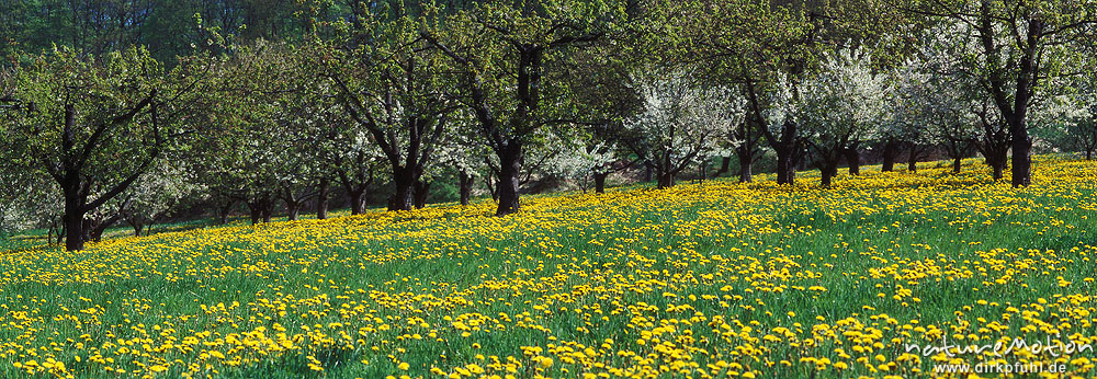 blühende Kirschbäume und Löwenzahn, Witzenhausen, Deutschland
