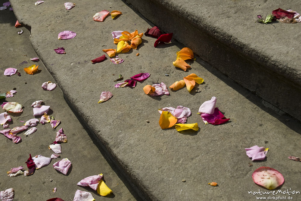Blütenblätter auf Treppenstufe, Hochzeitsfeier, Stift Bassum, Bassum, Deutschland