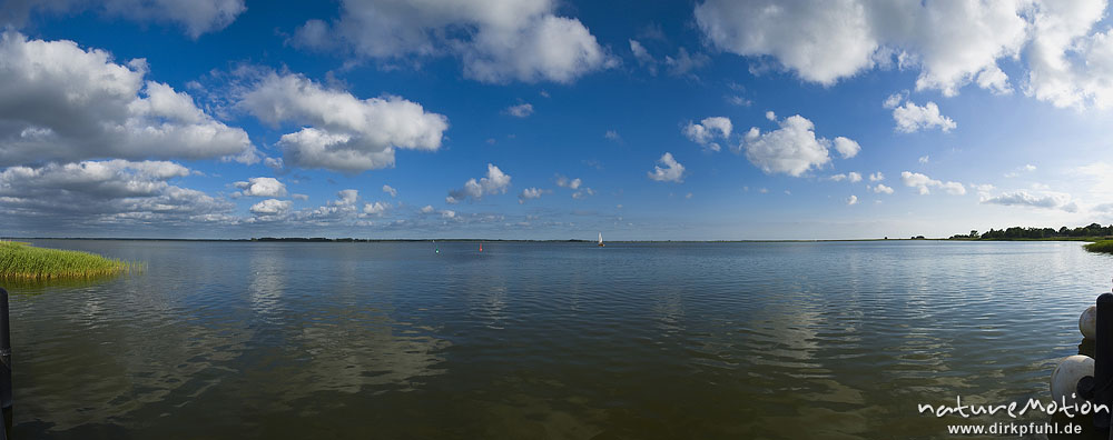 Bodden am Hafen von Born, blauer Himmel mit Cumulus Wolken, Darß, Zingst, Deutschland