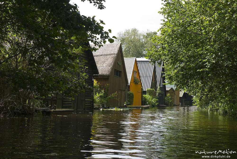 Bootshäuser am Ufer der Havel, Blankenförde, Deutschland
