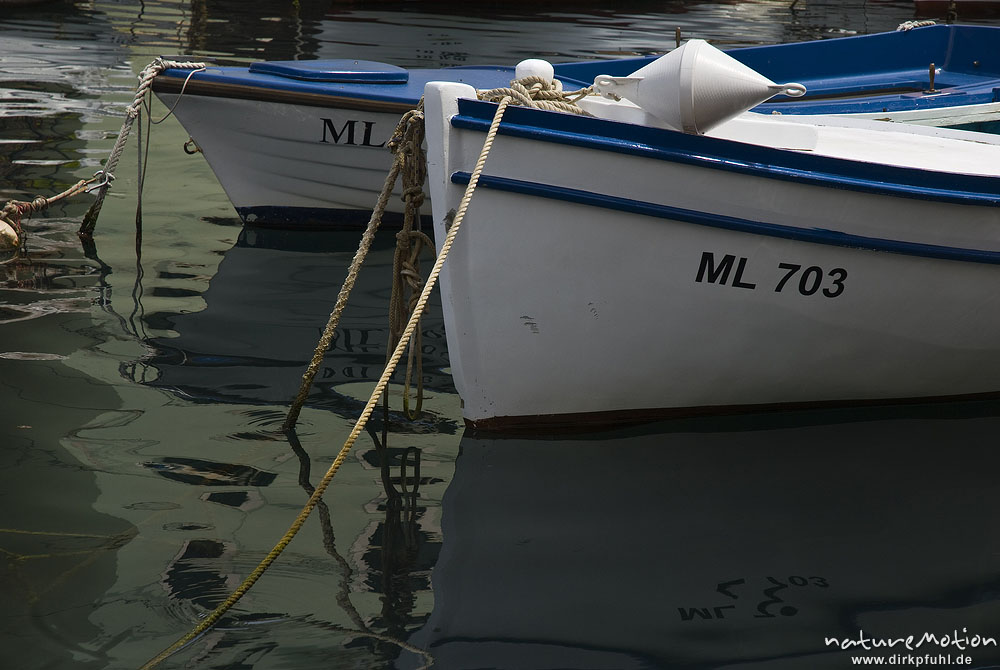 Bootsrümpfe, angetäut im Hafenbecken Veli Losinje, Kroatien