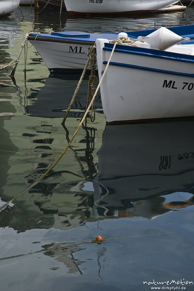 Bootsrümpfe, angetäut im Hafenbecken, Veli Losinje, Kroatien