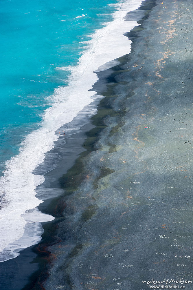 Brandungslinie, Strand von Nonza, schwarzer Kies, starke Brandung, Cap Corse, Korsika, Frankreich