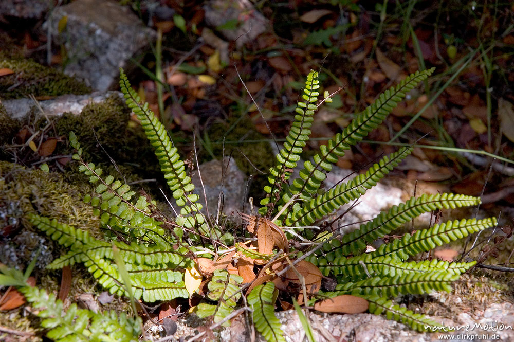 Braunstieliger Streifenfarn, Asplenium trichomanes, Aspleniaceae, Wegrand, Gorche de Spelunca, Korsika, Frankreich