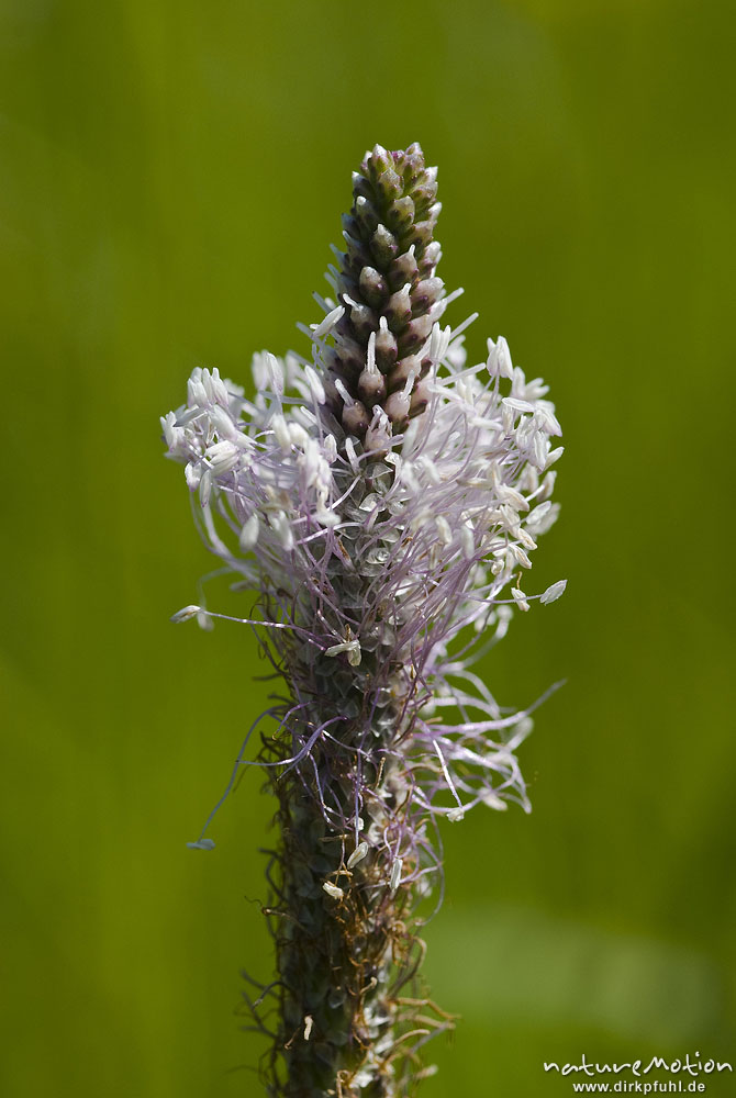 Breitwegerich, Plantago major, Plantaginaceae, (? unsicher) Blütenstand mit Antheren, Kerstlingeröder Feld, Göttingen, Deutschland