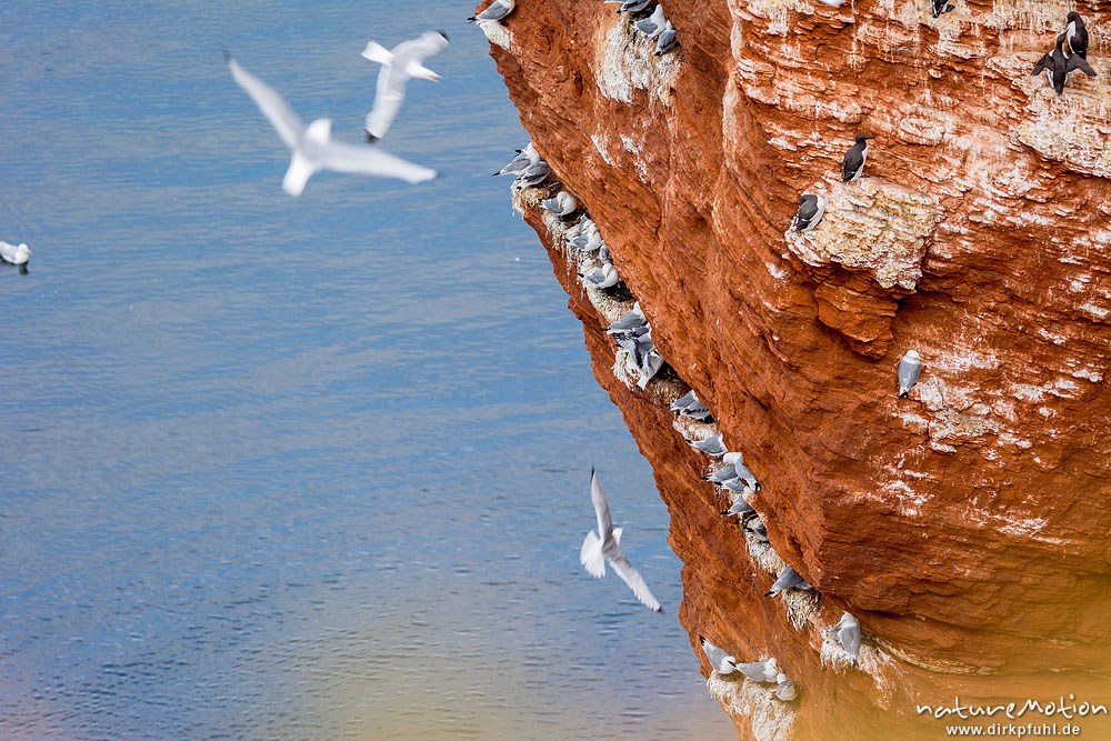 Brutfelsen mit Dreizehenmöwe, Rissa tridactyla, Möwen (Laridae), und Trottellumme, Lummenfelsen, Helgoland, Deutschland