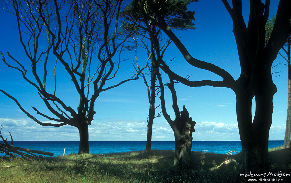 Buchen am Darßer Weststrand im Gegenlicht, Darß, Zingst, Deutschland