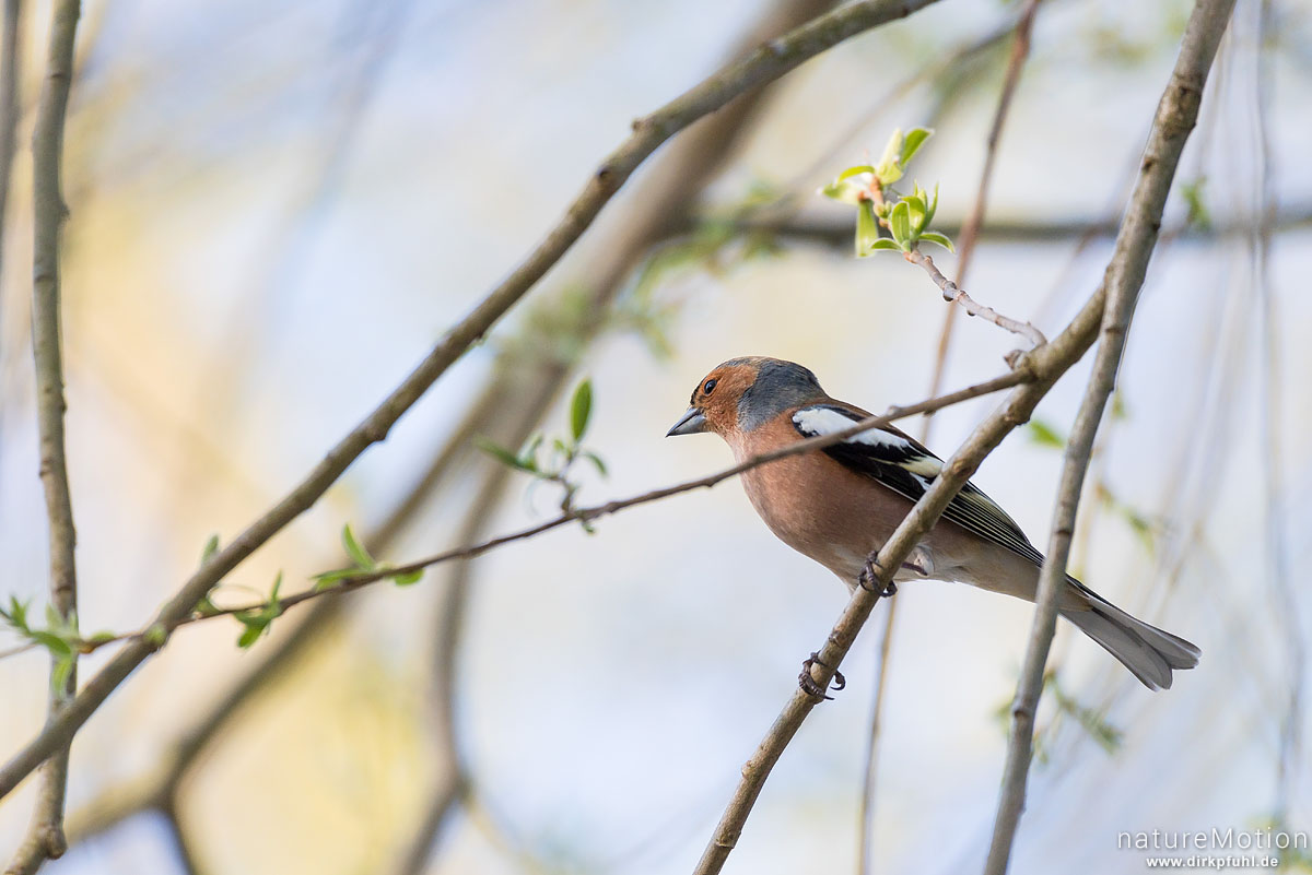 Buchfink, Fringilla coelebs, Finken (Fringillidae), Tier im Geäst, Kiessee, Göttingen, Deutschland