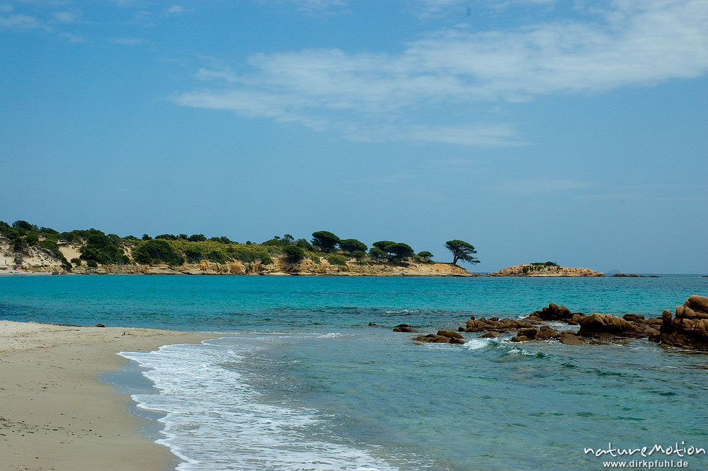 Bucht bei Palombaggia, Pino Acciaju, Strand und Felsen Korsika, Frankreich