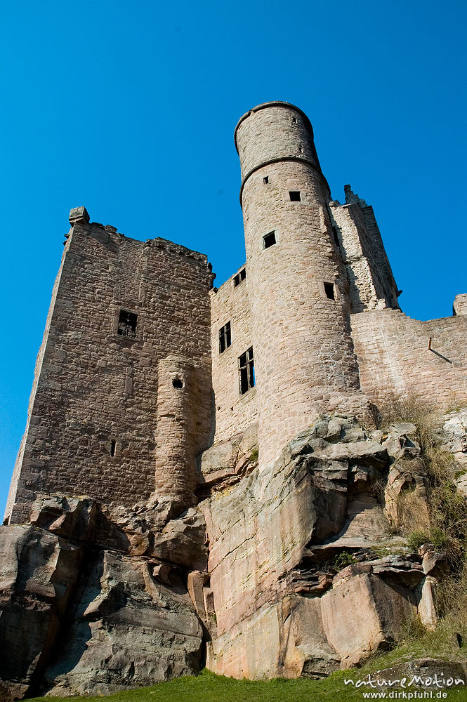 Burg hanstein, Mauern und Türme gegen blauen Himmel Bornhagen, Deutschland