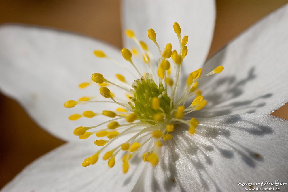 Buschwindröschen, Anemone nemorosa, Ranunculaceae, Blüte mit Antheren, Buchenwald Settmarshausen bei Göttingen, Deutschland