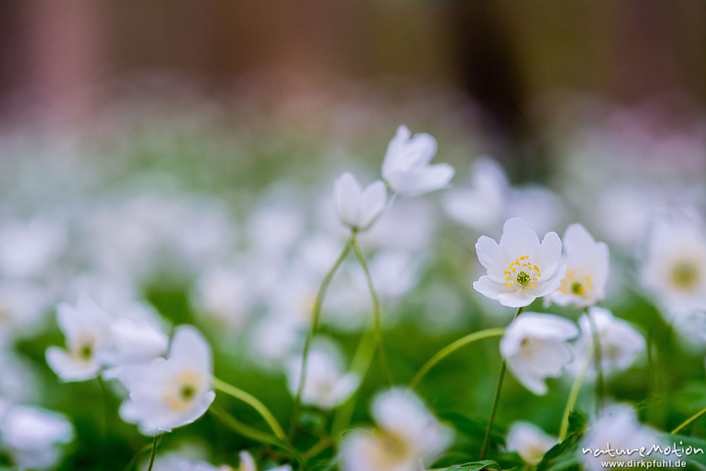 Buschwindröschen, Anemone nemorosa, Ranunculaceae, Blüten in dichtem Bestand auf dem Waldboden, Göttingen, Deutschland