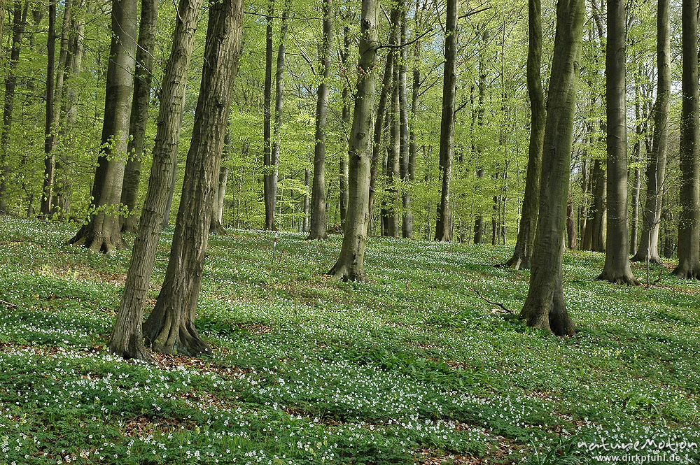 Buschwindröschen, Anemone nemorosa, Teppich inmitten von Buchenwald, Westerberg Göttingen, Deutschland