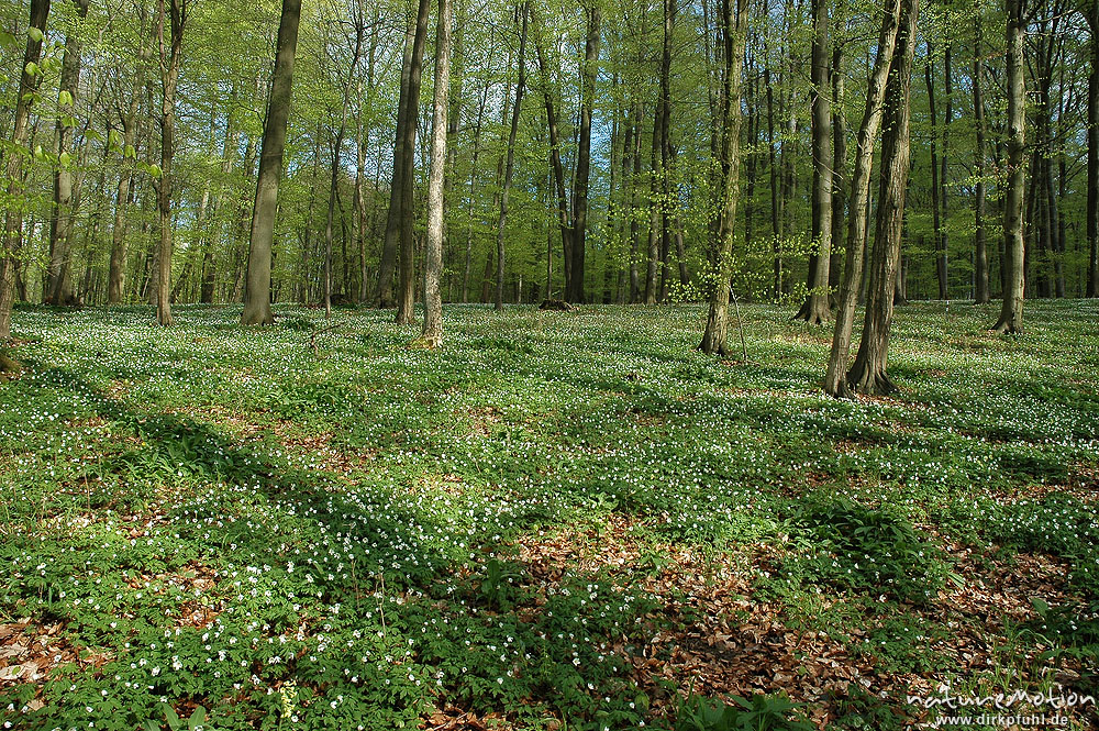 Buschwindröschen, Anemone nemorosa, Teppich inmitten von Buchenwald, Westerberg Göttingen, Deutschland