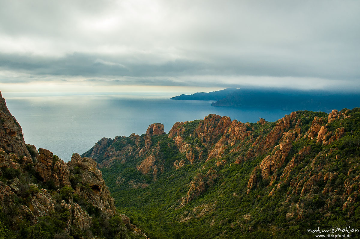 Calanche, Felsen und Blick auf den Golf von Porto Korsika, Frankreich