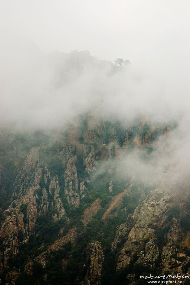 Calanche in Wolken, Château fort, Korsika, Frankreich
