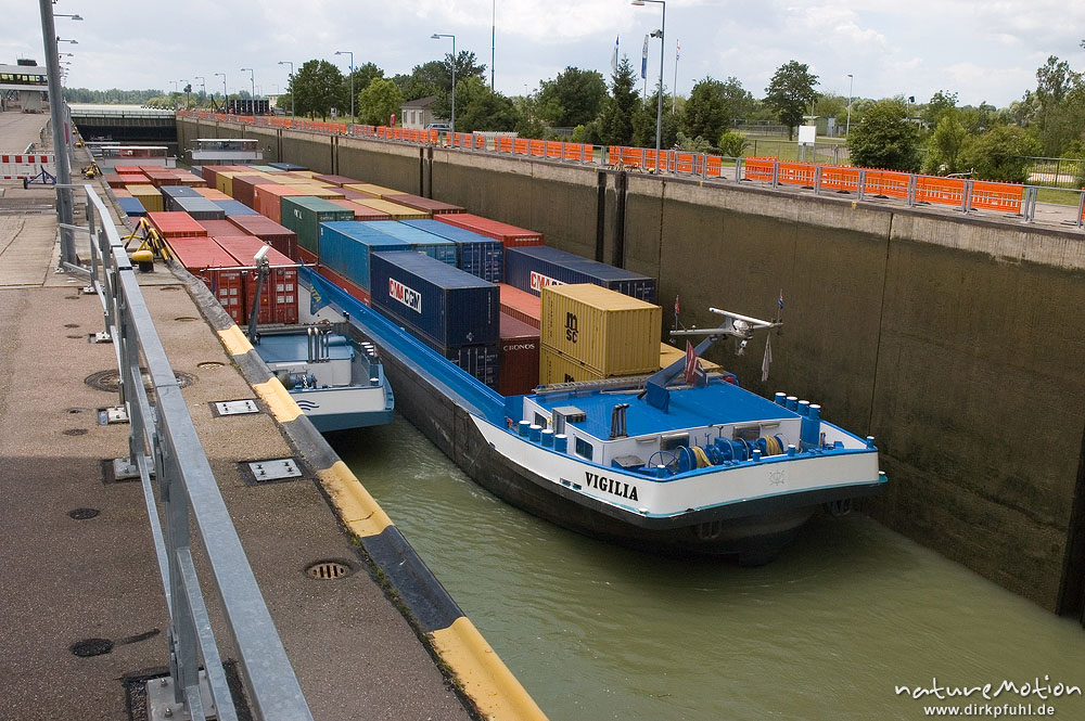 Containerschiffe in der Schleuse von Iffezheim, Rhein Iffezheim, Deutschland