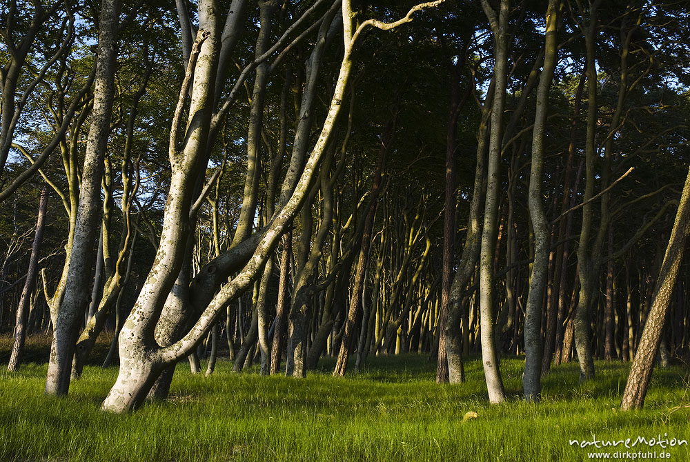 Darsser Urwald, Buchen am Dünenrand, Waldbestand zum Meer hin offen, Abtragungszone, Darß, Zingst, Deutschland