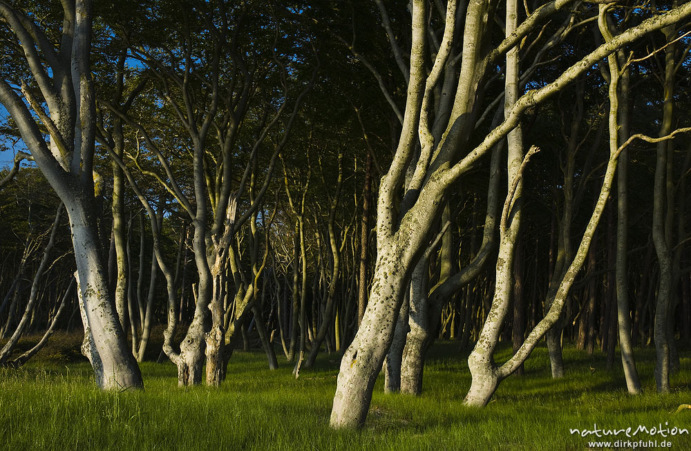 Darsser Urwald, Buchen am Dünenrand, Waldbestand zum Meer hin offen, Abtragungszone, Darß, Zingst, Deutschland