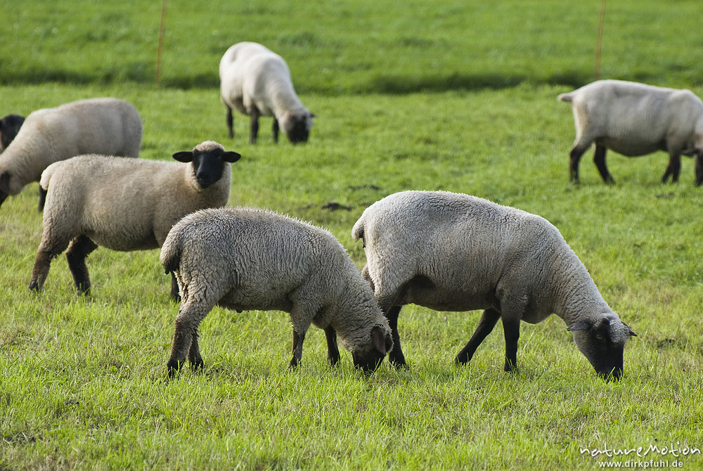 Deutsches schwarzköpfiges Fleischschaf, Tiere auf Weide, Cheiner Torfmoor, Cheine/Salzwedel, Deutschland