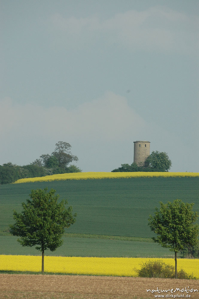 Diemardener Warte, blühende Rapsfelder, Äcker und Baumreihen Göttingen, Deutschland
