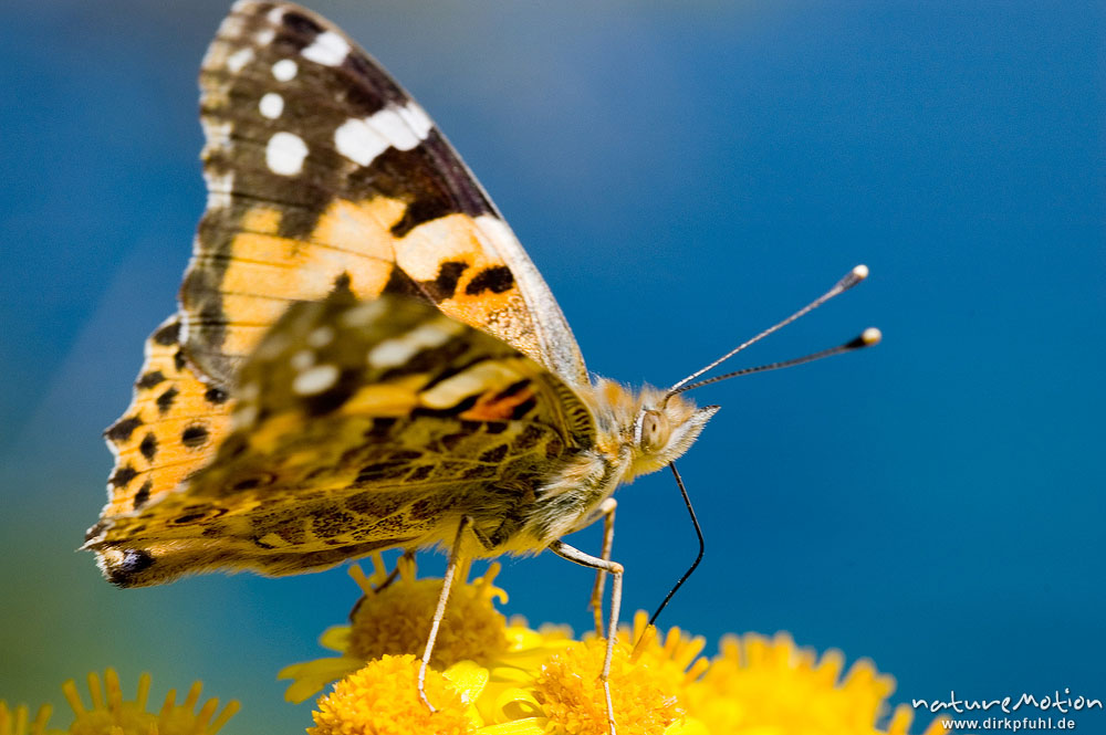 Diestelfalter, Vanessa cardui, Cynthia cardui, Nymphalidae, an Asteraceae, Küste bei Ile Rousse, Korsika, Frankreich