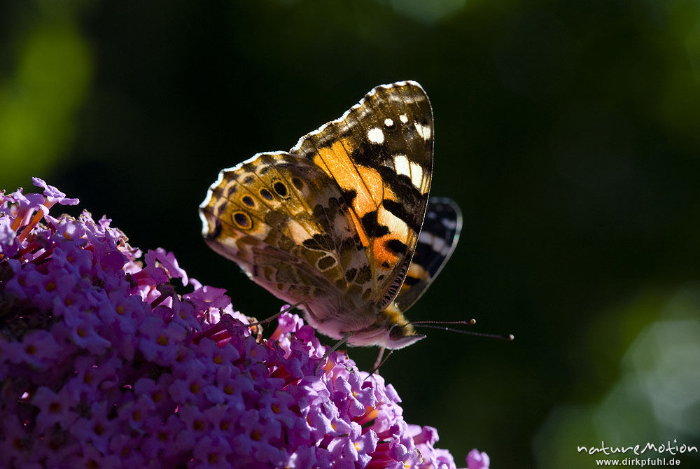 Diestelfalter, Vanessa cardui, Cynthia cardui, Nymphalidae, auf Fliederblüten, Göttingen, Deutschland