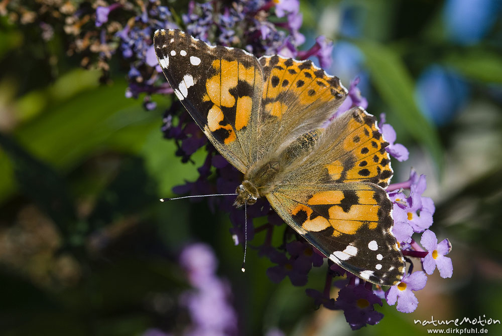 Diestelfalter, Vanessa cardui, Cynthia cardui, Nymphalidae, auf Fliederblüten, Göttingen, Deutschland
