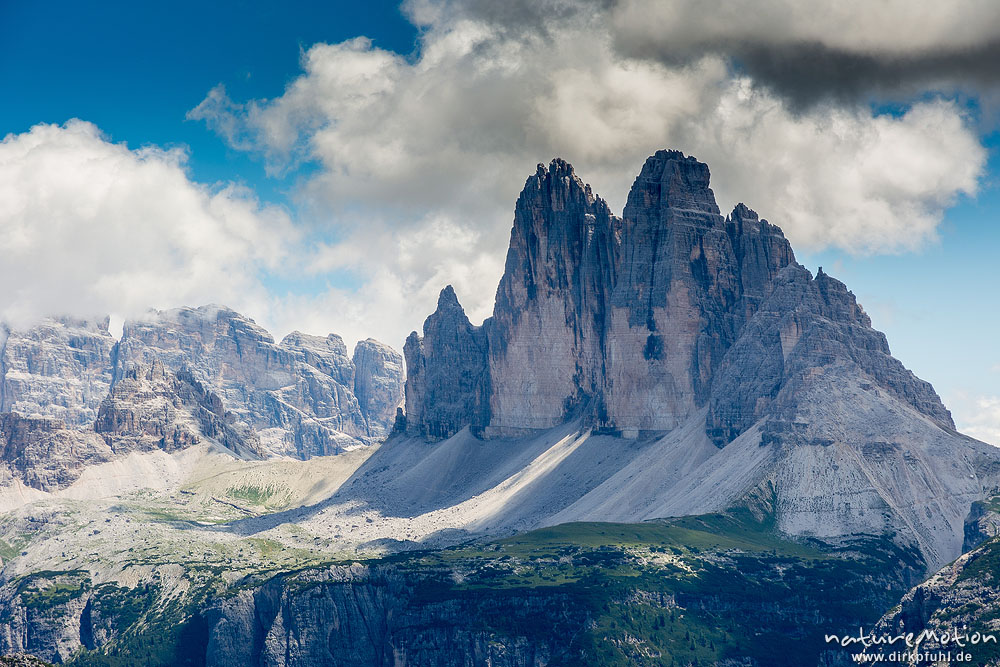 Drei Zinnen, Blick von den Strudelköpfen, Dolomiten, Italien