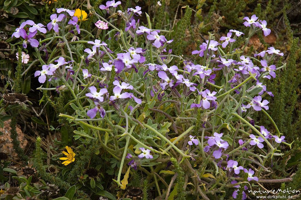 Dreihörnige Levkoje, Matthiola tricuspidata, Kreuzblütengewächse (Brassicaceae), Küstengarigue, Capo Pertusato, Korsika, Frankreich