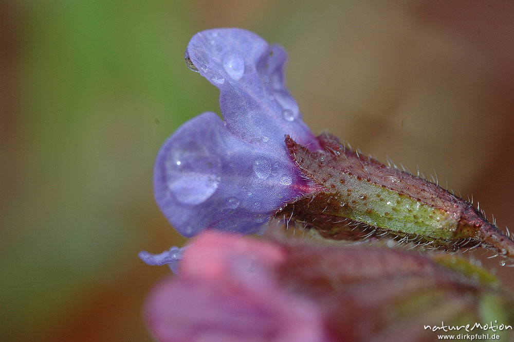 Echtes Lungenkraut, Pulmonaria officinalis, Blüte seitlich, Regentropfen, Göttinger Wald Göttingen, Deutschland