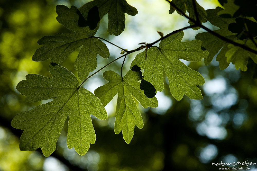 Eingriffeliger Weißdorn, Crataegus monogyna, Rosaceae, Blätter im Gegenlicht, Weisswassertal Göttingen, Deutschland