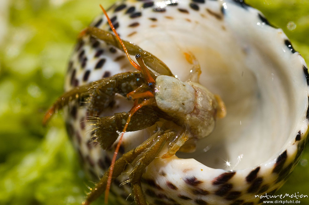 Einsiedlerkrebs, Pagurus prideaux, in Schneckenhaus, Bonifacio, Korsika, Frankreich