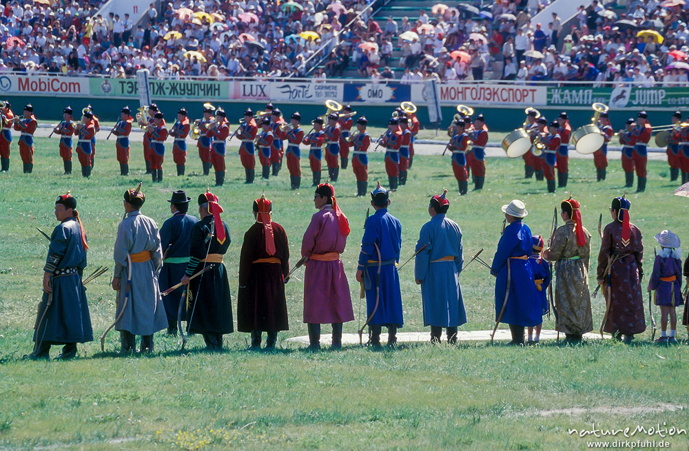 Einzug der Wettk?mpfer ins Stadion, Bodgensch?tzen und Milit?rkapelle Ulaanbaatar - Ulan Bator, Mongolei