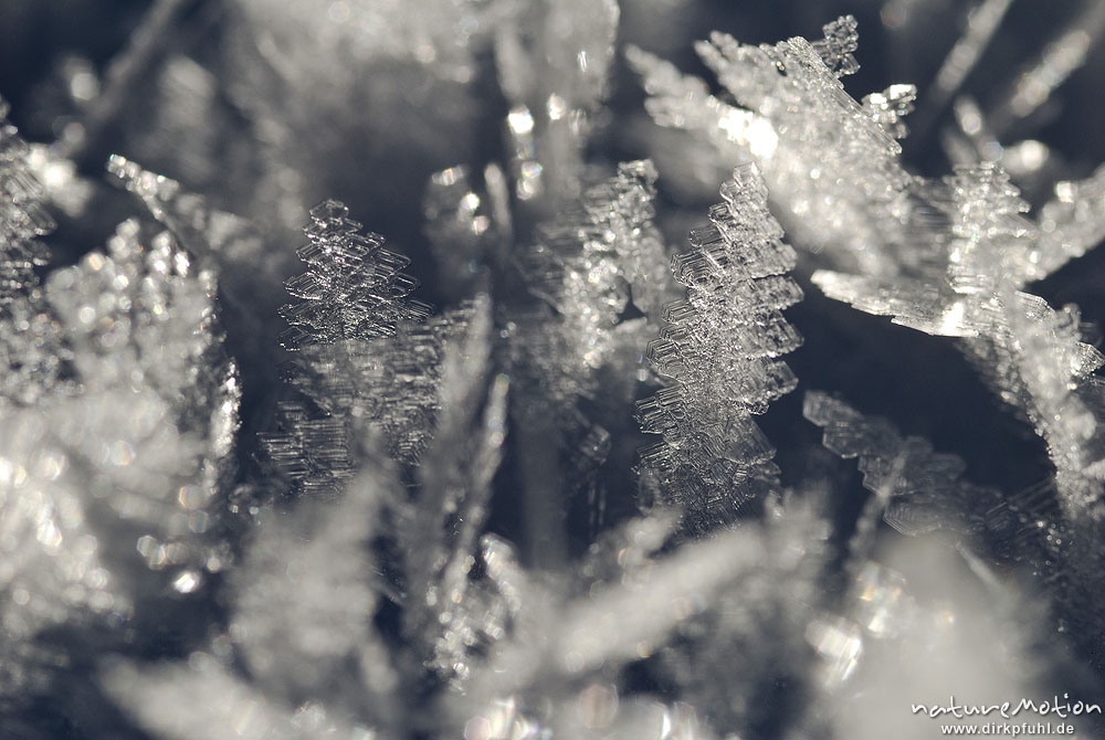 Eiskristalle auf Altschnee, Harz, Torfhaus, Deutschland