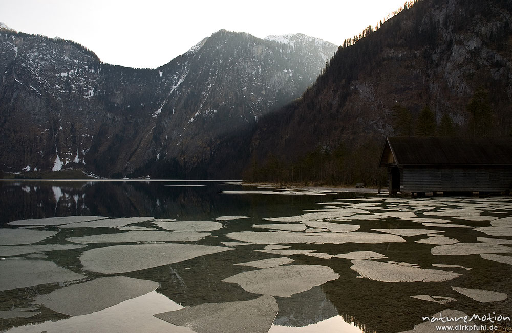 Eisschollen auf dem Königssee, Blick nordostwärts auf Ebenhorn Königssee, Deutschland