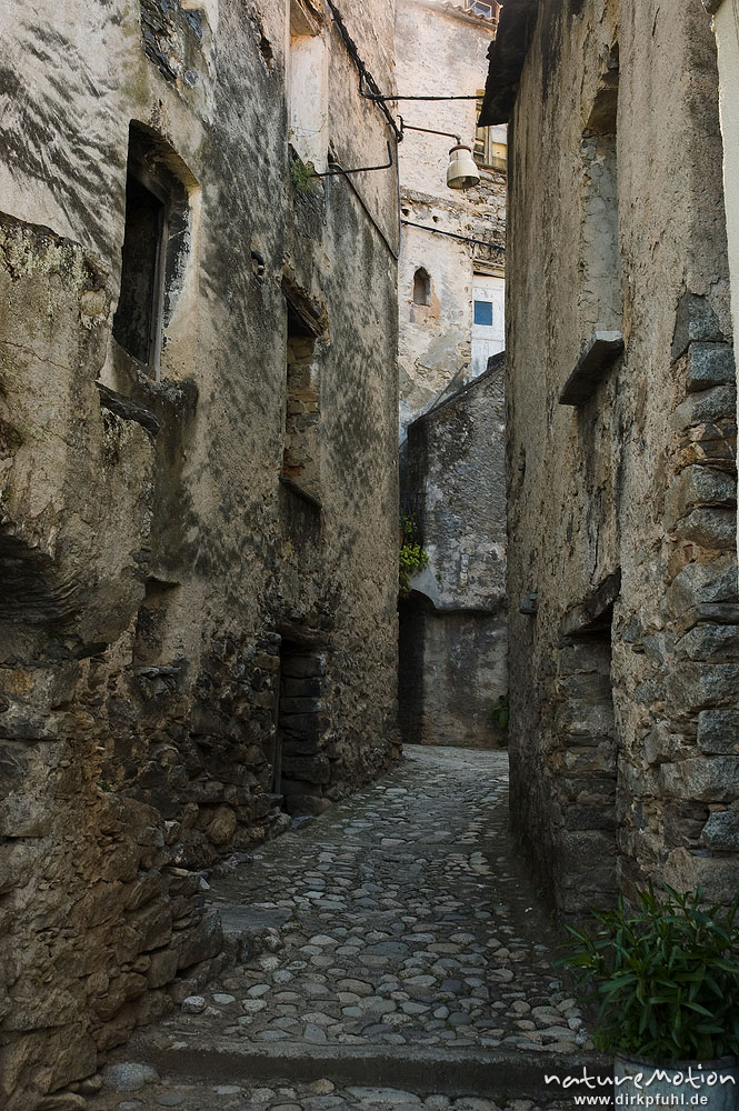 enge Gasse, gepflasterte Strasse, Altstadt von Corte Korsika, Frankreich