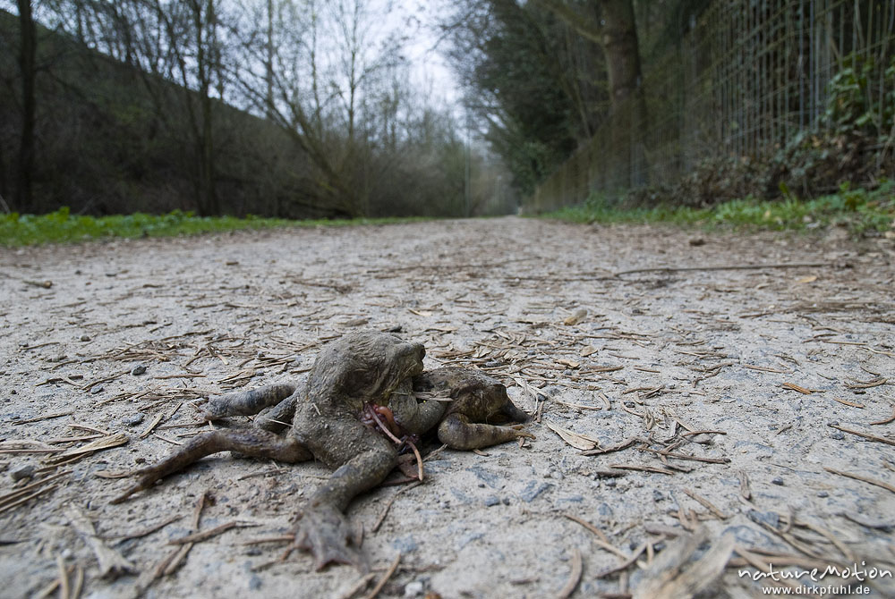 Erdkröte, Bufo bufo, Bufonidae, Paar, überfahren auf Radweg, Stadtfriedhof Göttingen, Deutschland