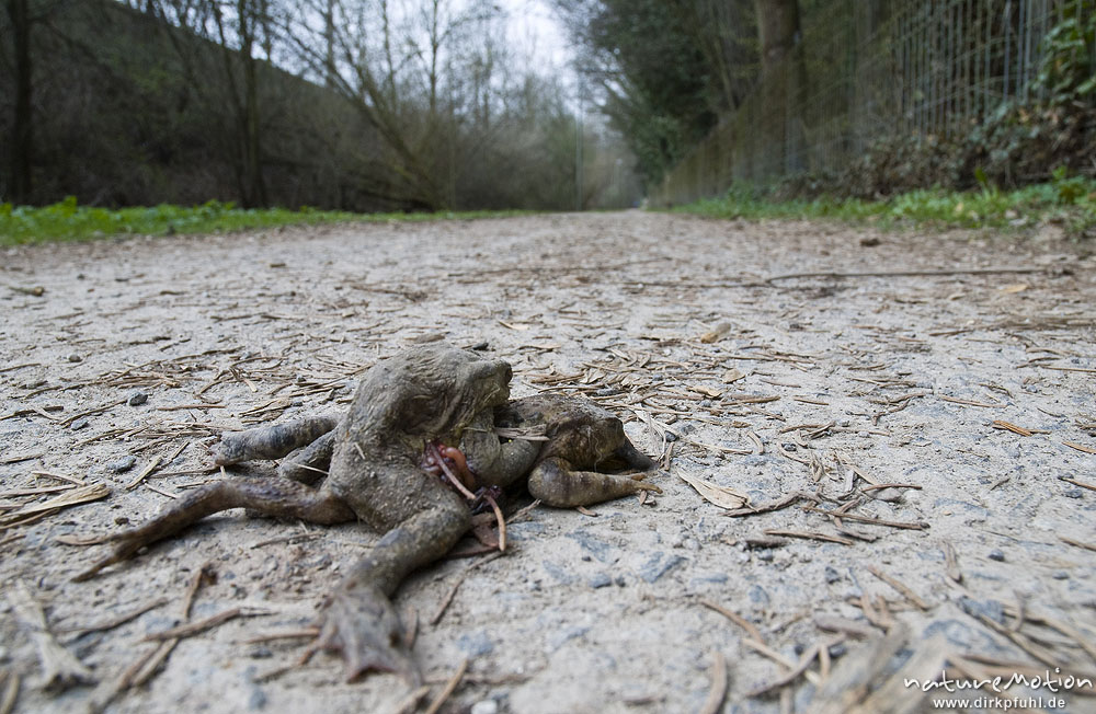 Erdkröte, Bufo bufo, Bufonidae, Paar, überfahren auf Radweg, Stadtfriedhof Göttingen, Deutschland
