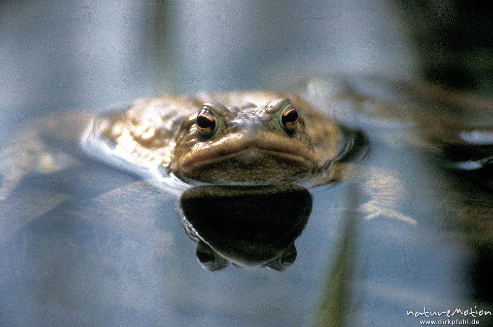 Erdkröte, Bufo bufo, Bufonidae, Portrait, Spiegelung Hoher Hagen, Deutschland