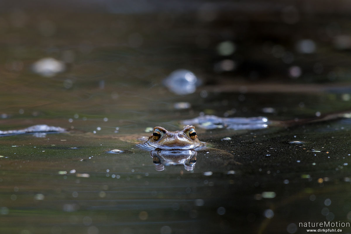 Erdkröte, Bufo bufo, Bufonidae, Tier im Laichgewässer, Waldtümpel, Kehr, Borheckstraße, Göttingen, Deutschland