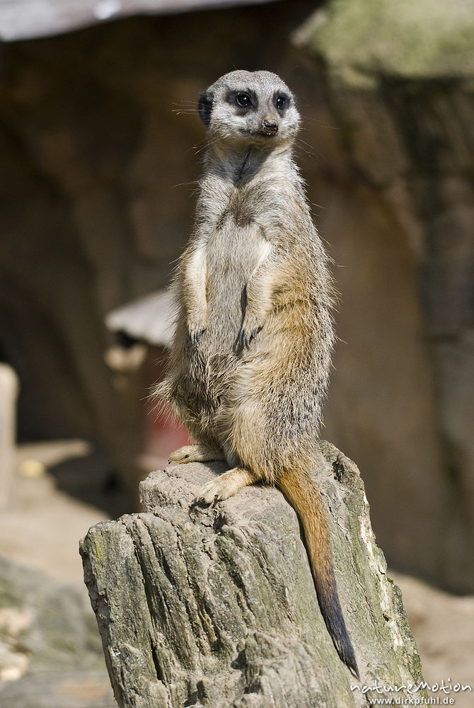 Erdmännchen, Suricata suricatta, Mangusten (Herpestidae), "Wachposten", Tier beobachtet Umgebung, Zoo Hannover, Hannover, Deutschland