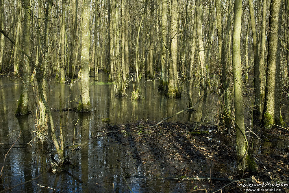 Erlenbruch im Winter, Reste von Eisdecke, Herberhäuser Stieg Göttingen, Deutschland
