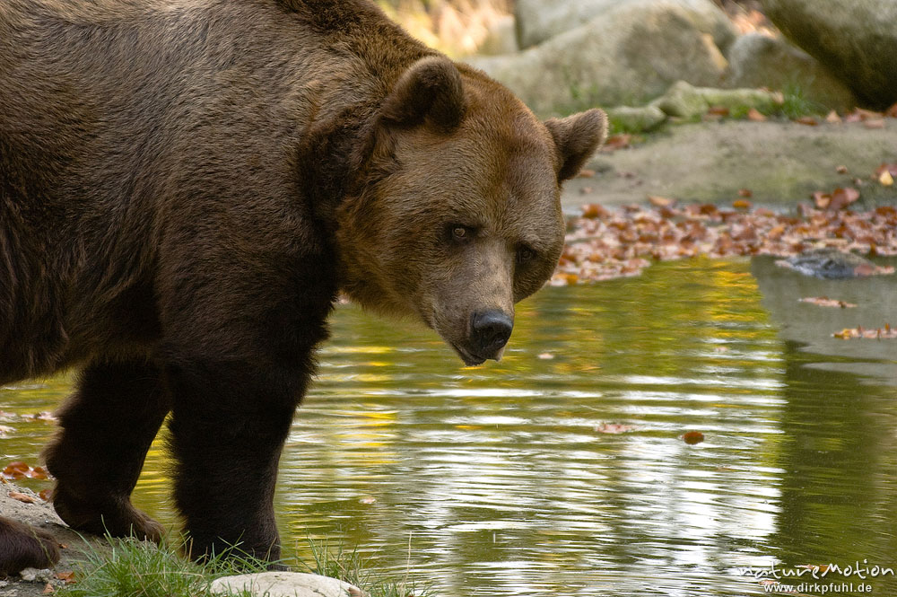 Europäischer Braunbär, Ursus arctos arctos, Ursidae, beim trinken, Tierpark Thale, Bodetal, Deutschland