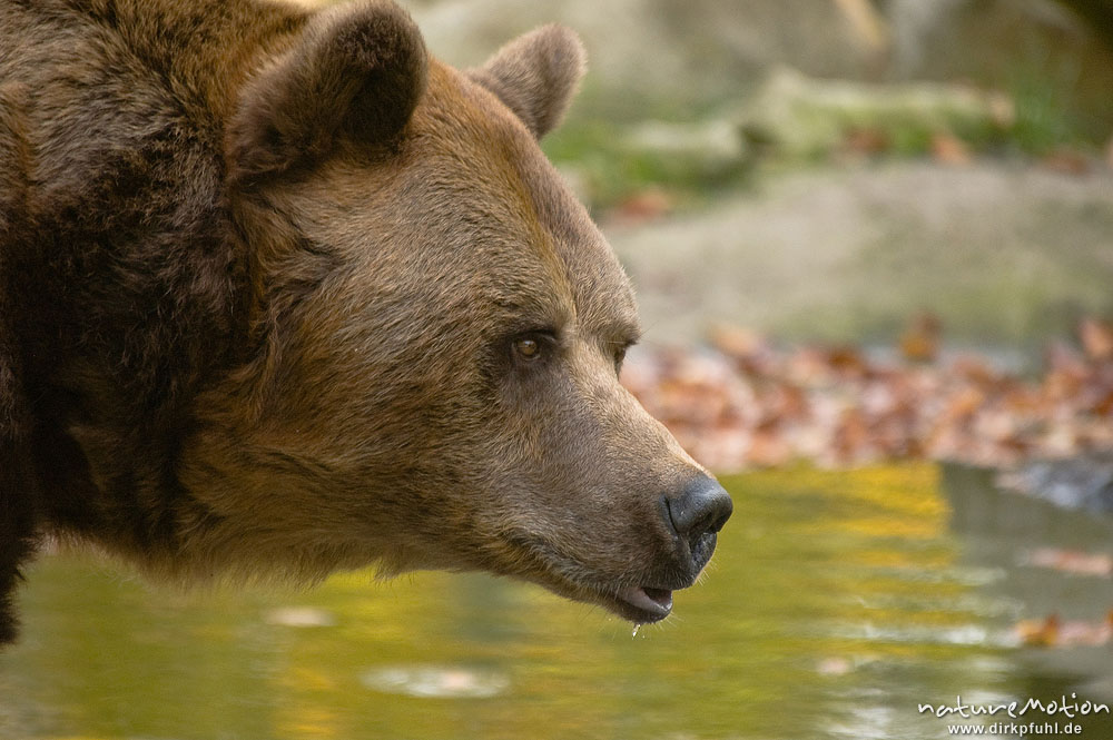 Europäischer Braunbär, Ursus arctos arctos, Ursidae, beim trinken, Tierpark Thale, Bodetal, Deutschland